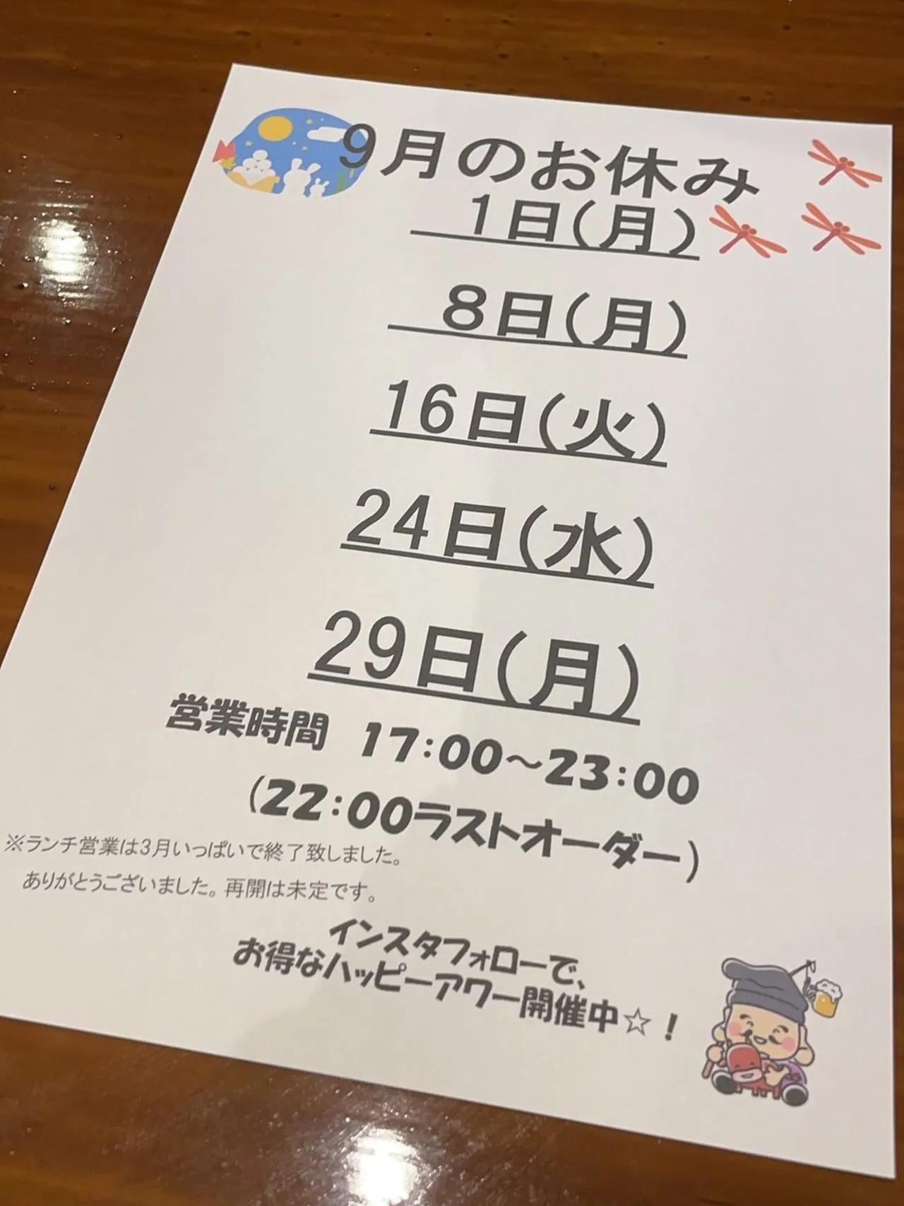 9月のお休みです💖