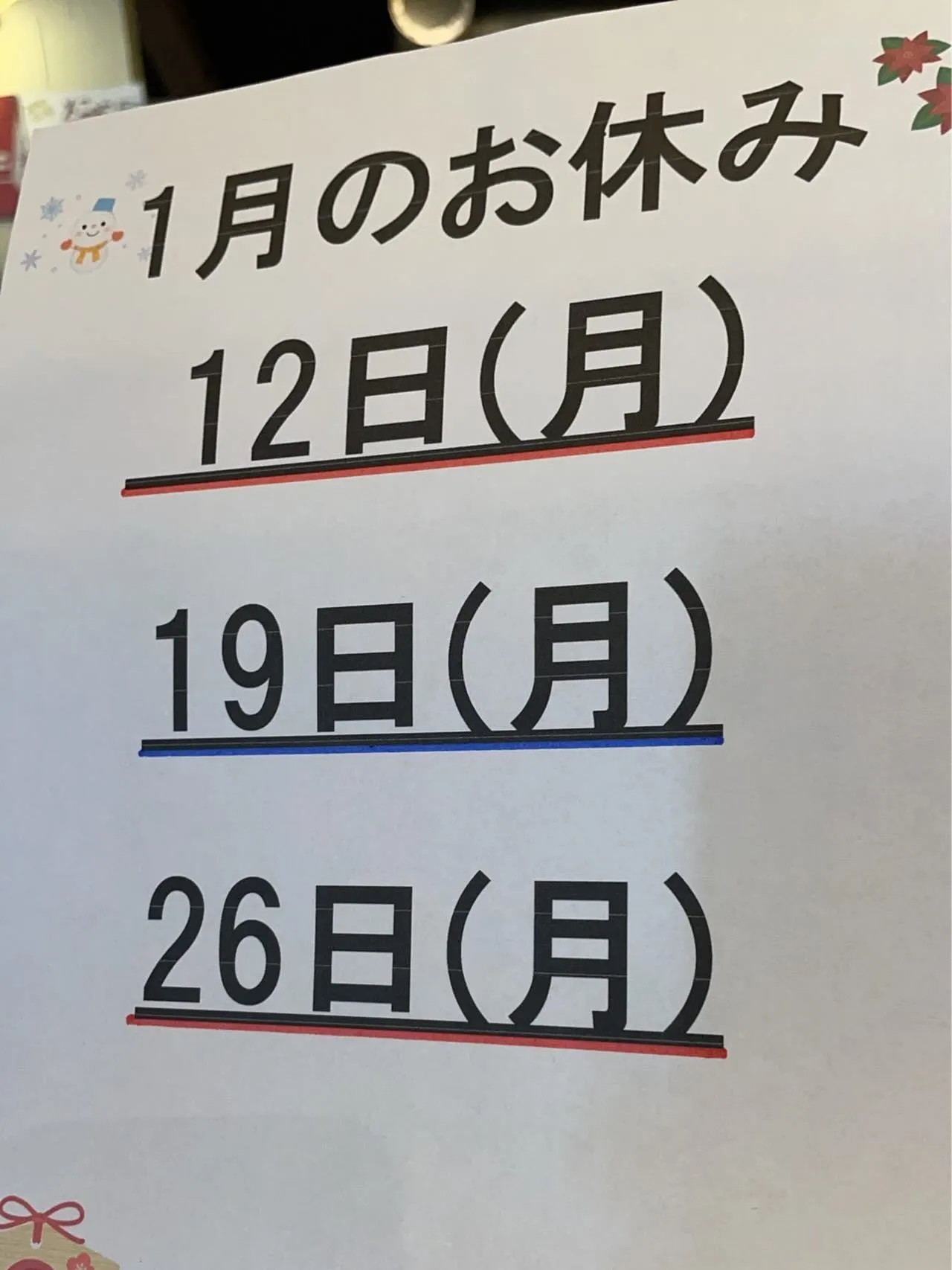 1月のお休みです💖 2026/01/09 1月のお休みです💖 12日の祝日はお休みですので、 ご注意を!! 成人の皆様おめでとうございます🎉🎉 大変遅くなりましたが、 明けましておめでとうございます! 今年もよろしくお願い致します🤲 また、ランチ営業を再開しております!! おかわりももちろん出来ます❤️ パワーアップしたランチ営業をお楽しみくださいませ🎵